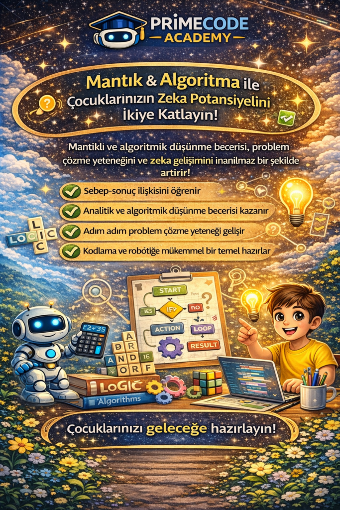 Prime Code Academy serüveninin ilk basamağında amacımız, çocuklara bir yazılım dilinden ziyade, ömür boyu kullanacakları bir problem çözme disiplini kazandırmaktır. Bu modülde öğrencilerimiz, dijital dünyanın karmaşık görünen yapılarını en küçük mantıksal parçalarına ayırmayı ve adım adım çözüm üretmeyi keşfederler. Bu aşama, gelecekteki karmaşık projelerin sarsılmaz zihinsel temelini oluşturur.